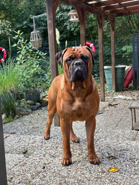 Eddie ist ein junger, großer Herzenshund – verspielt, freundlich und voller Neugier aufs Leben. Der 1 1/2 Jahre Bordeaux-Doggen–Bullmastiff-Mix liebt Menschen, lernt schnell und reagiert gut auf ruhige, klare Signale.