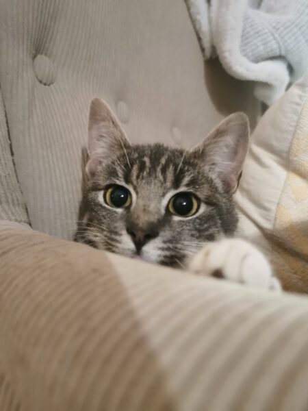 Die kleine Maus lief hilfesuchend und laut schreiend auf einem Feld und suchte verzweifelt den Anschluss zu Menschen. Und das war schlau von ihr, denn es stellte sich schnell heraus, dass sie dringend Hilfe benötigte. Eine schwere, verschleppte Lungenentzündung hatte sie total geschwächt. Dank intensiver ärztlicher und menschlicher Betreuung erholt sie sich nun zunehmend und wir hoffen, dass dieses liebenswerte Kätzchen bald ein Zuhause findet. Sie ist geimpft, gechippt und kastriert und verträglich mit Katzen und Hunden. Informationen: TSV Harlingerland e.V., Tel.. 04974-9144931