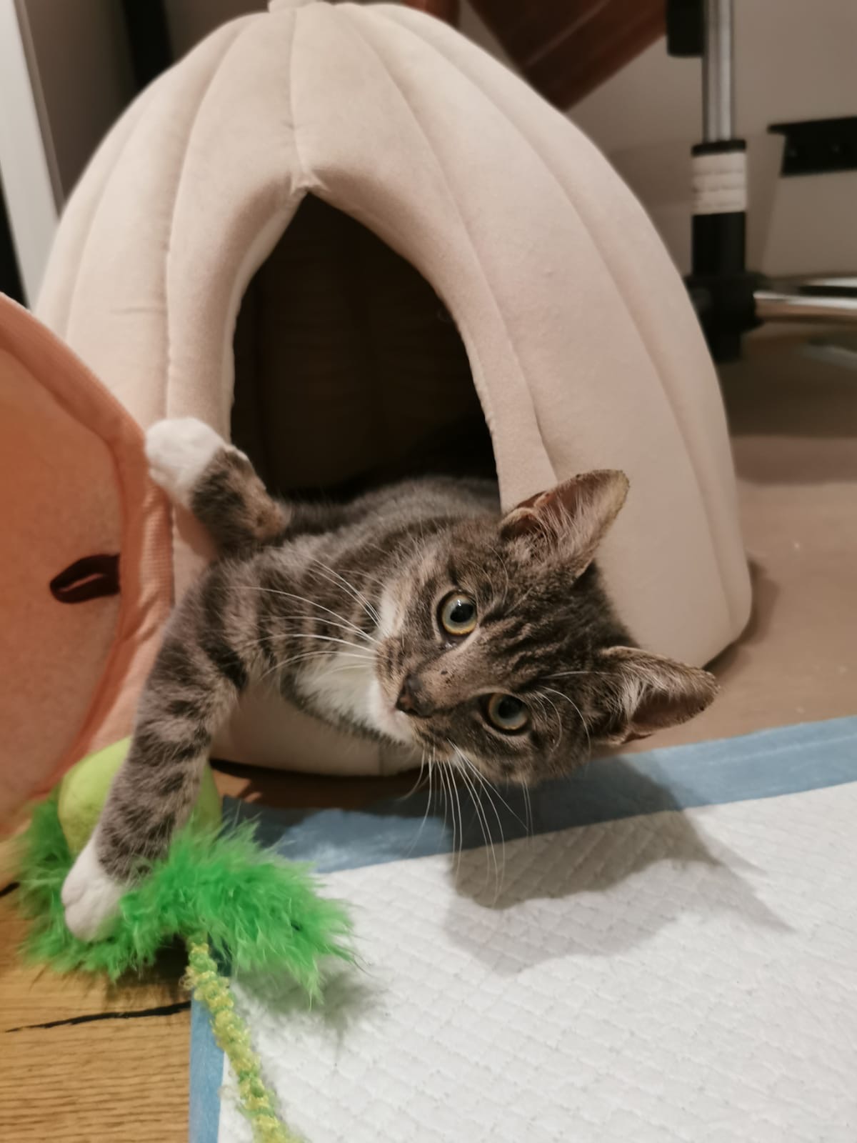 Die kleine Maus lief hilfesuchend und laut schreiend auf einem Feld und suchte verzweifelt den Anschluss zu Menschen. Und das war schlau von ihr, denn es stellte sich schnell heraus, dass sie dringend Hilfe benötigte. Eine schwere, verschleppte Lungenentzündung hatte sie total geschwächt. Dank intensiver ärztlicher und menschlicher Betreuung erholt sie sich nun zunehmend und wir hoffen, dass dieses liebenswerte Kätzchen bald ein Zuhause findet. Sie ist geimpft, gechippt und kastriert und verträglich mit Katzen und Hunden. Informationen: TSV Harlingerland e.V., Tel.. 04974-9144931